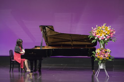 | Tさん。ベルガマスク組曲よりプレリュードを演奏。 0歳のお子さんがいるのに発表会に出演してくださいました。 |