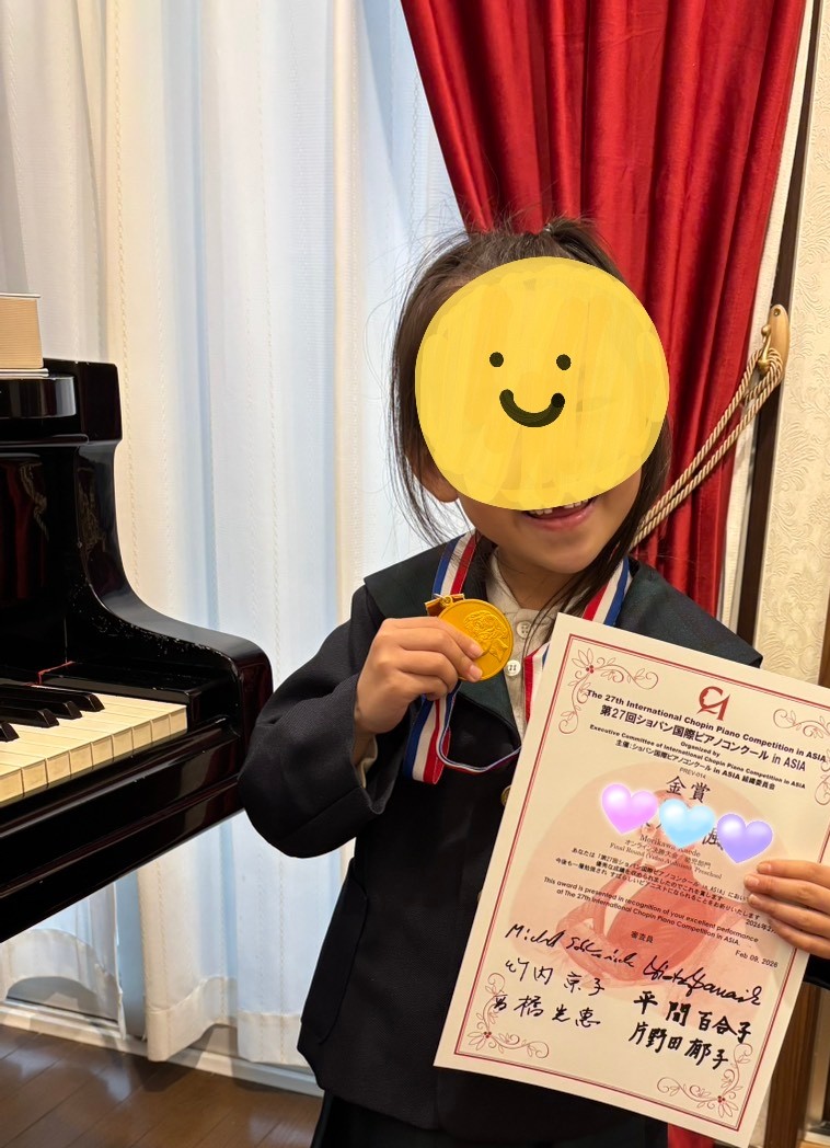 コンクール決勝大会入賞おめでとう!② Posted on 2026年2月10日2026年3月2日 by ongakunomori Kちゃん(年長)が、ショパン国際ピアノコンクール in Asiaのオンライン決勝大会において金賞を受賞しました。 入賞作品を是非お聴きください。